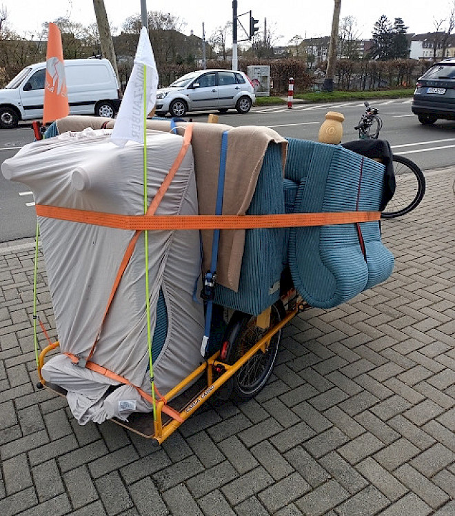 Cependant, le plus grand défi n'est généralement pas le poids des charges, mais l'imagination des gens. Beaucoup ont du mal à s'imaginer que des objets lourds et encombrants peuvent être transportés de manière fiable avec un vélo.