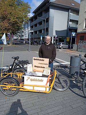 Stephan Kröske est le cerveau derrière Lasten-Zauber, un service de transport durable à vélo à Krefeld. Tout a commencé en décembre 2022 - pas avec un business plan, mais avec un problème très pratique : des poutres en bois de quatre mètres de long devaient être transportées du magasin de bricolage à la maison sans voiture. Avec une solution de remorque faite maison pour la cave de bricolage, la conclusion est venue : le transport à vélo fonctionne - et étonnamment bien. Et avec CARLA, c'est vraiment efficace.