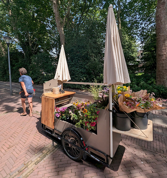 En cherchant la solution adéquate, le chemin a mené à CARLA CARGO en passant par un coursier à vélo. Après un essai, il était immédiatement clair que c'était la base parfaite pour un magasin de fleurs mobile.