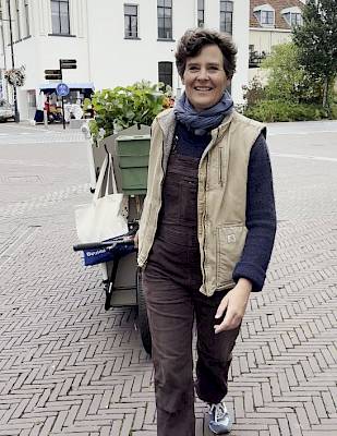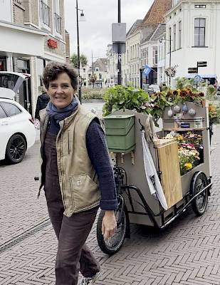 Une fois par semaine, Eline vend sa récolte dans le centre-ville. Au lieu d'un magasin fixe ou d'un stand de marché classique, la vision d'un point de vente flexible et vivant est née.